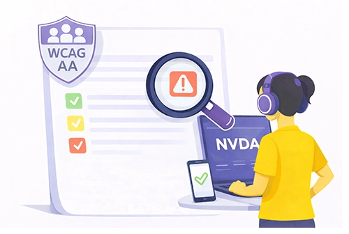 WCAG / EU-aligned audits with client-ready reports and dev-ready fixes. Keyboard + NVDA/VoiceOver on key flows.